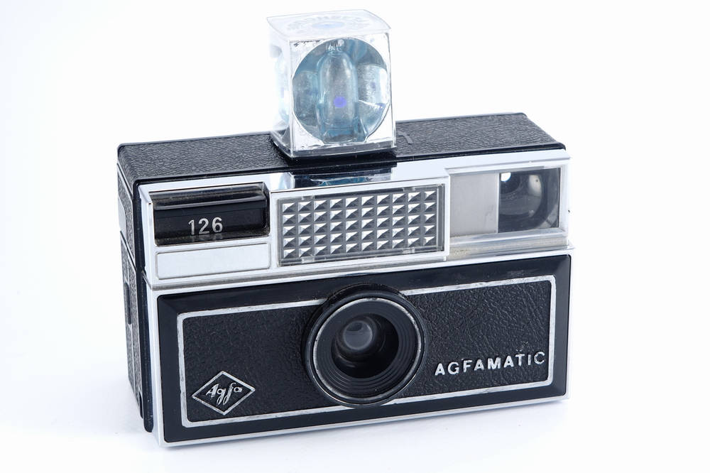 | Details | Bakelitkamera Vorgetäuschter Selen-Belichtungsmesser ü. Obj. "126" oben rechts Verchromter Zierrahmen Spannungsversorgung 2x PX 825 Blitzwürfeladapter (N) |